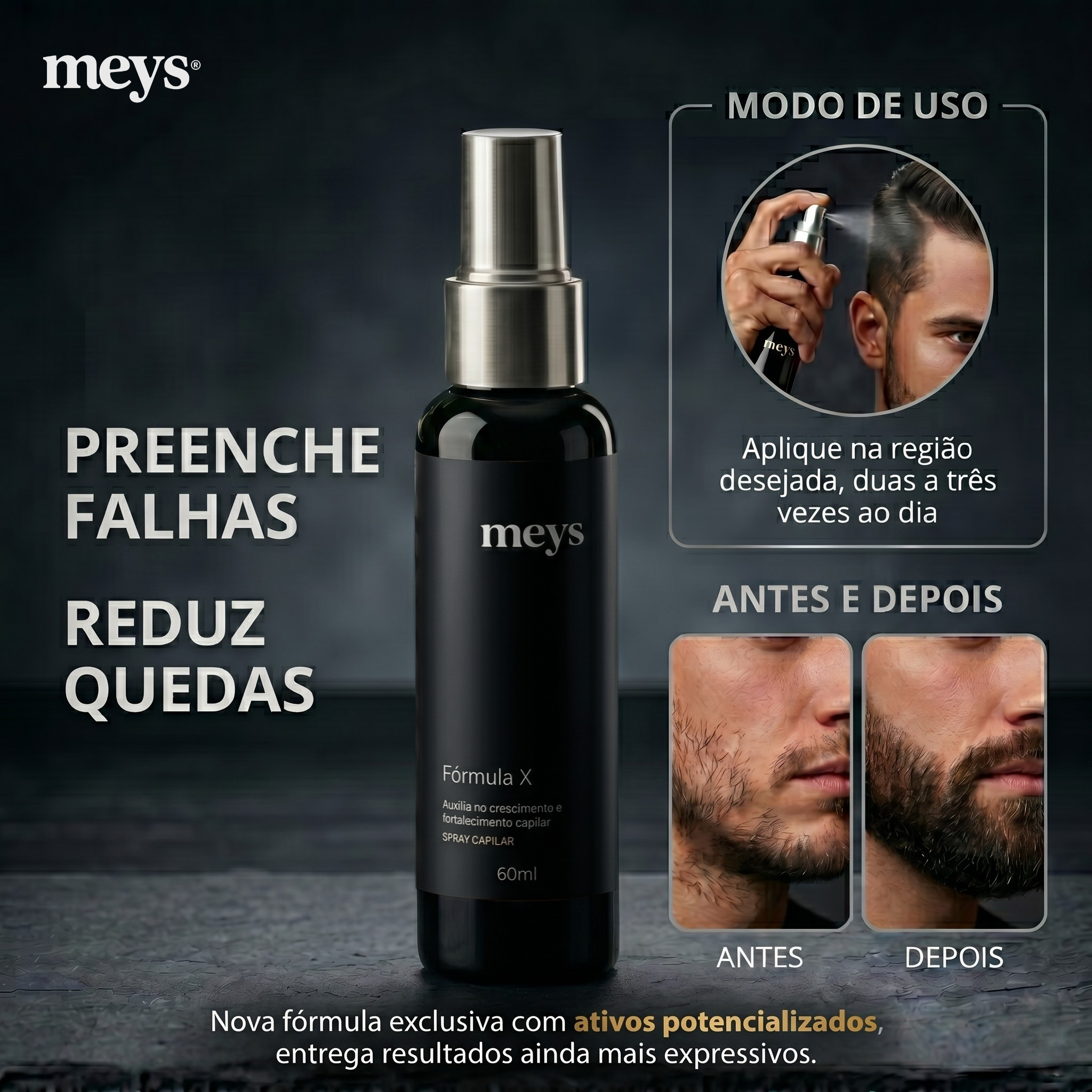 🔥 Apresentamos o novo tônico capilar e para barba da Meys – Fórmula X – mais potência, mais resultados!
